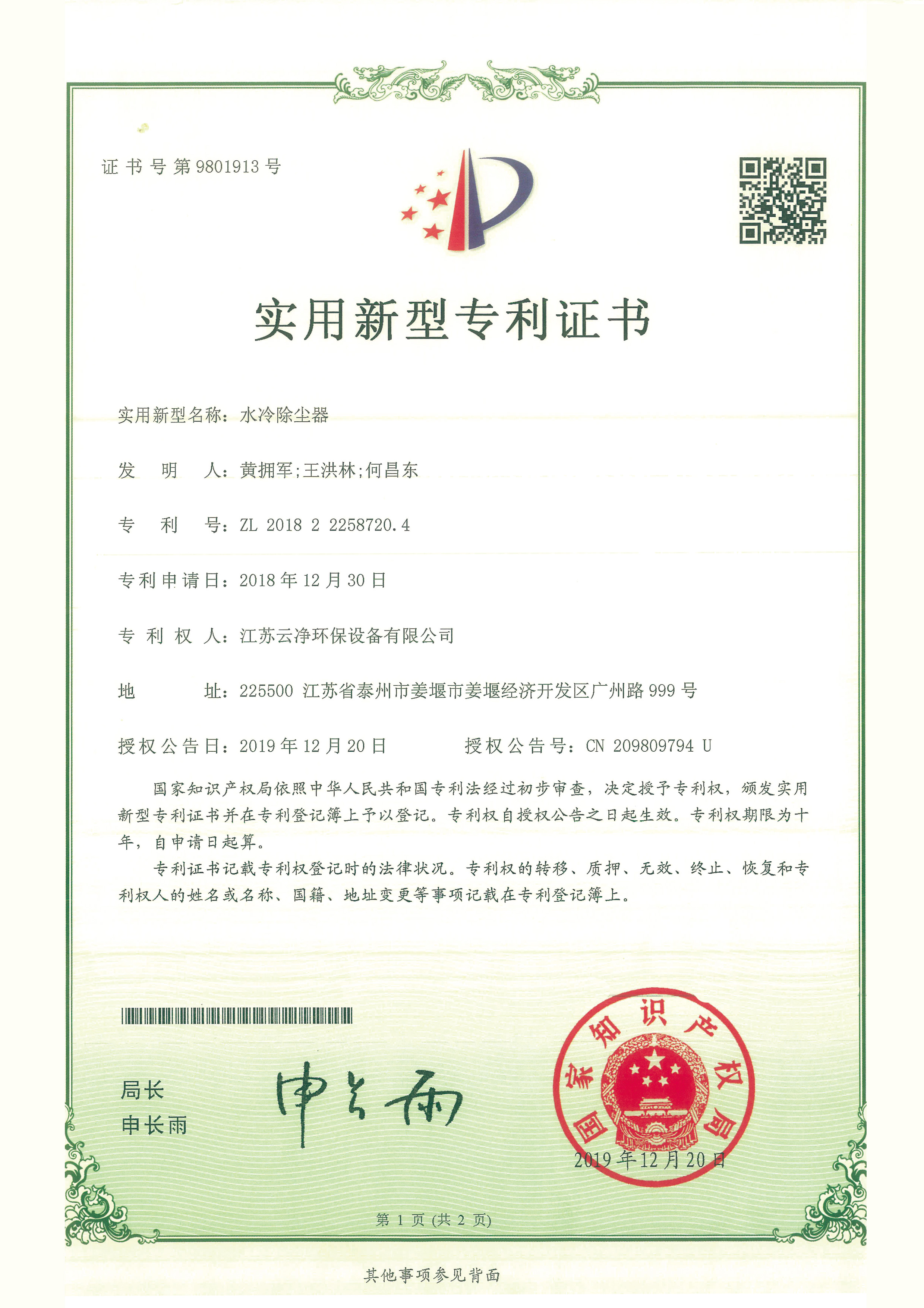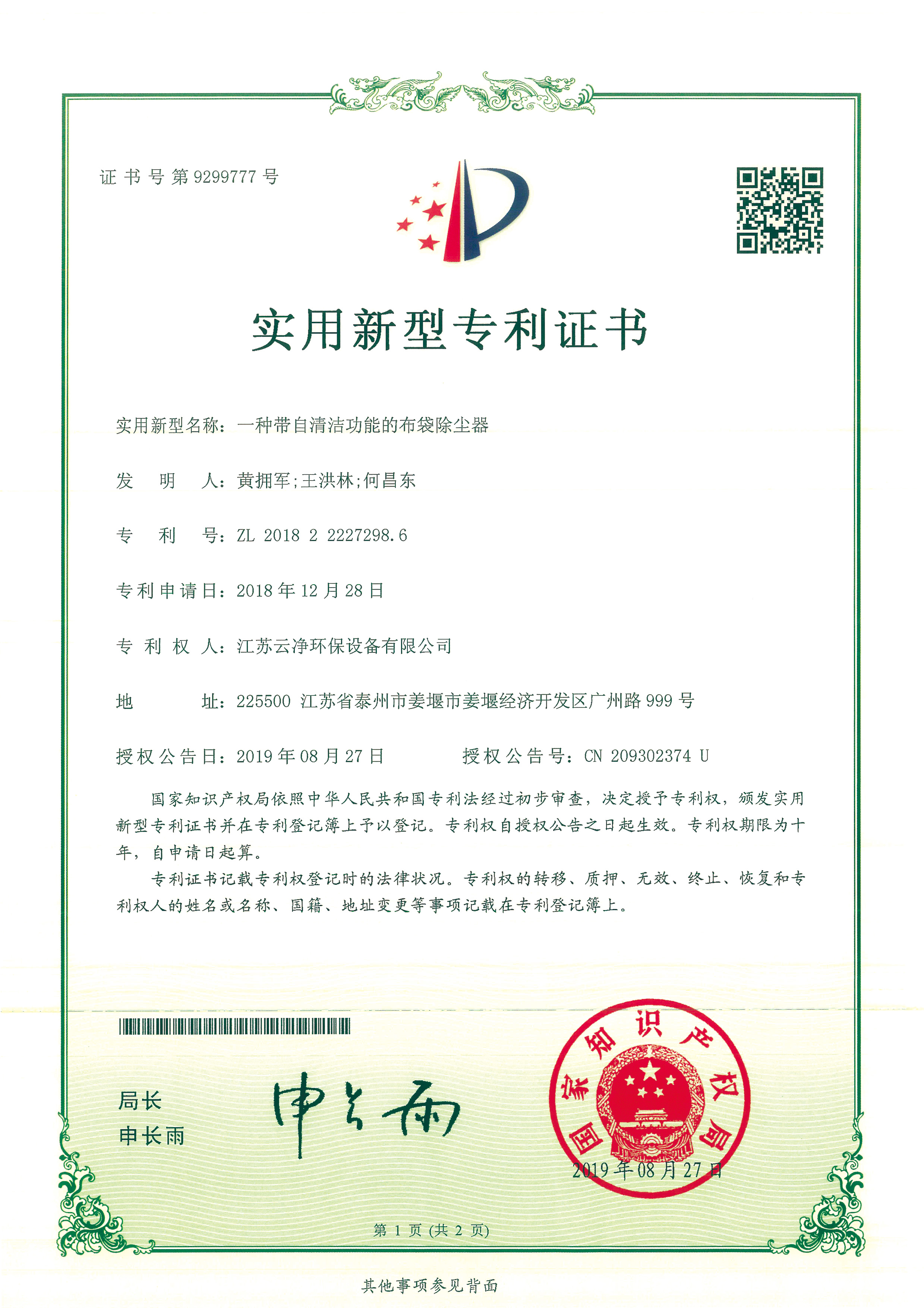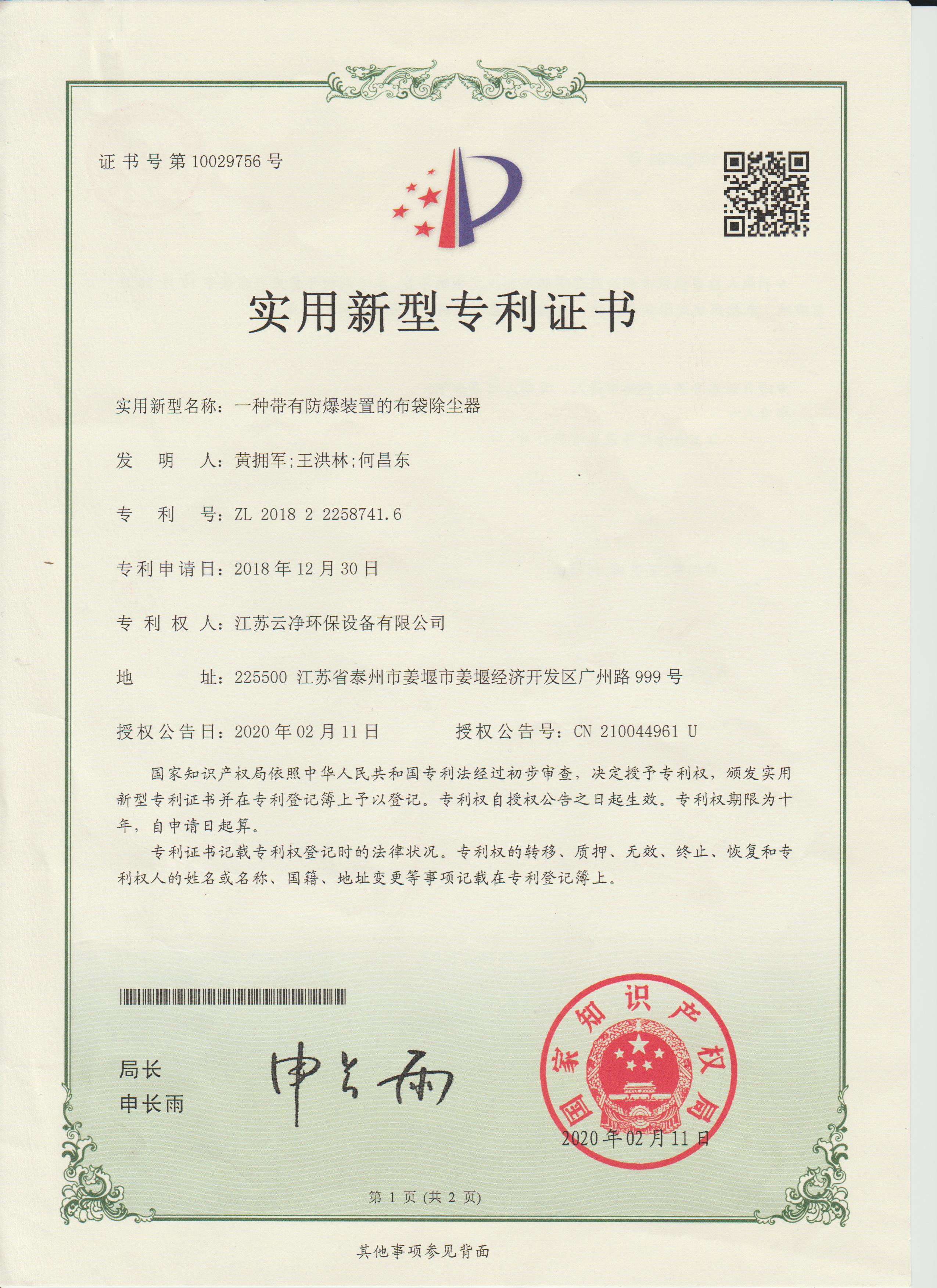 公司先后獲得“江蘇省民營科技企業”﹑“環保產業骨干企業” 、“重合同守信用AA級企業” 、通過ISO9001:2015質量體系認證、ISO14001:2015環境管理體系、知識產權管理體系和ISO45001:2018職業健康安全管理體系認證,為江蘇省高新技術企業。多項產品獲得高新技術產品認定,擁有發明及實用新型專利31件(ZL202020254279.7、ZL202020254287.1、ZL202020288783.9等),現有各類除塵設備﹑脫硫設備﹑超凈排放設備八大類近200個規格產品,特別是開發出國內的有色冶煉系統收砷布袋除塵器,該設備開創了收砷布袋除塵器先例,本體使用壽命可達十年之久,是國內其他設備無法比擬的。公司具備良好的產品研發能力,通過與相關科研院所技術合作開發了高效除塵器、燒結板除塵器、濾筒除塵器、脫硫濕電超凈排放一體化設備、中低溫脫硝設備、等離子體除臭設備等,產品受到用戶的一致好評。